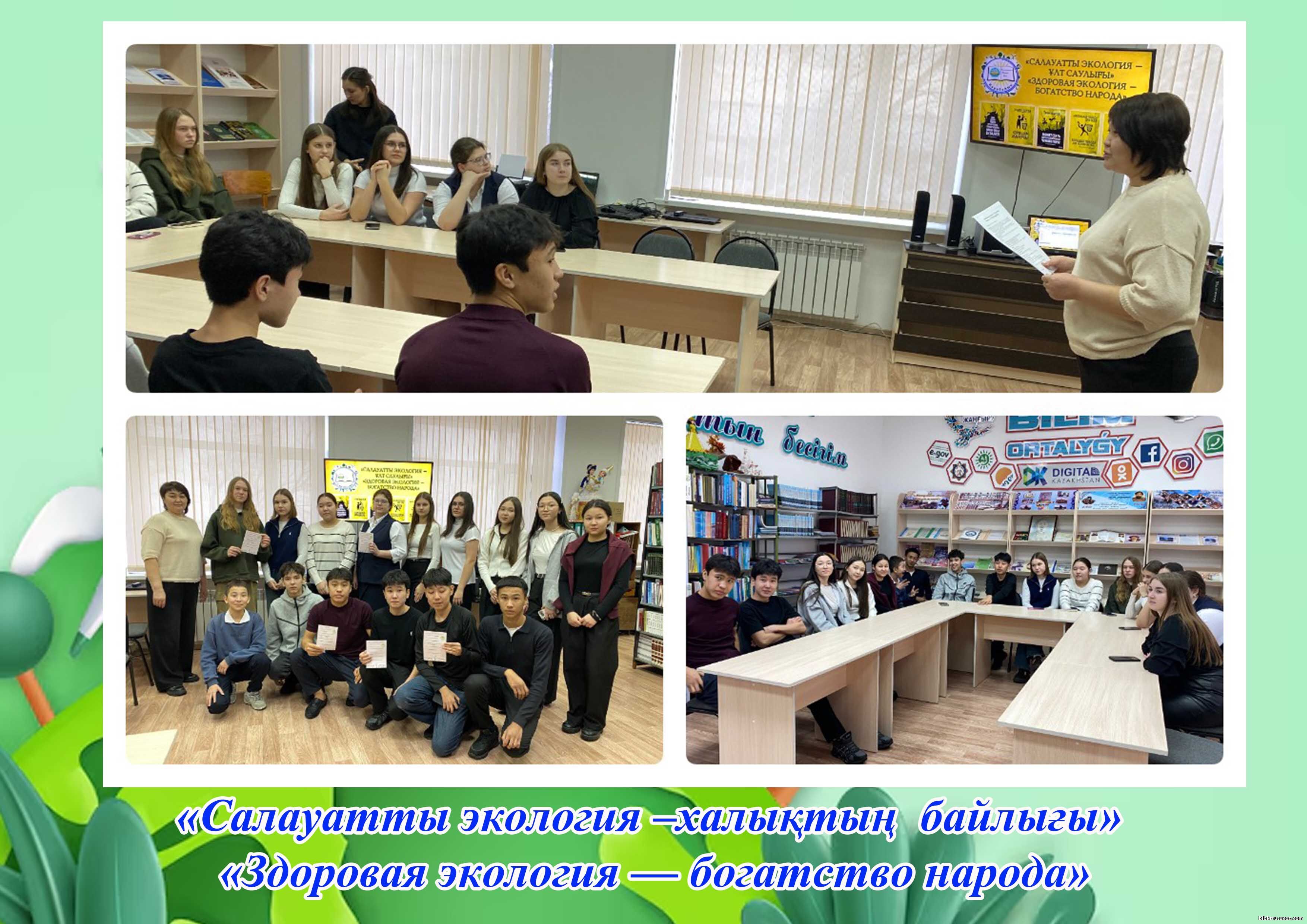 29 января библиотекарь Карабалыкской центральной районной библиотеки провела игру-викторину «Здоровая экология — богатство народа» для учащихся 9–10 классов общеобразовательных школ имени М. Горького, М. Сералина и Тогузакской общеобразовательной школы.