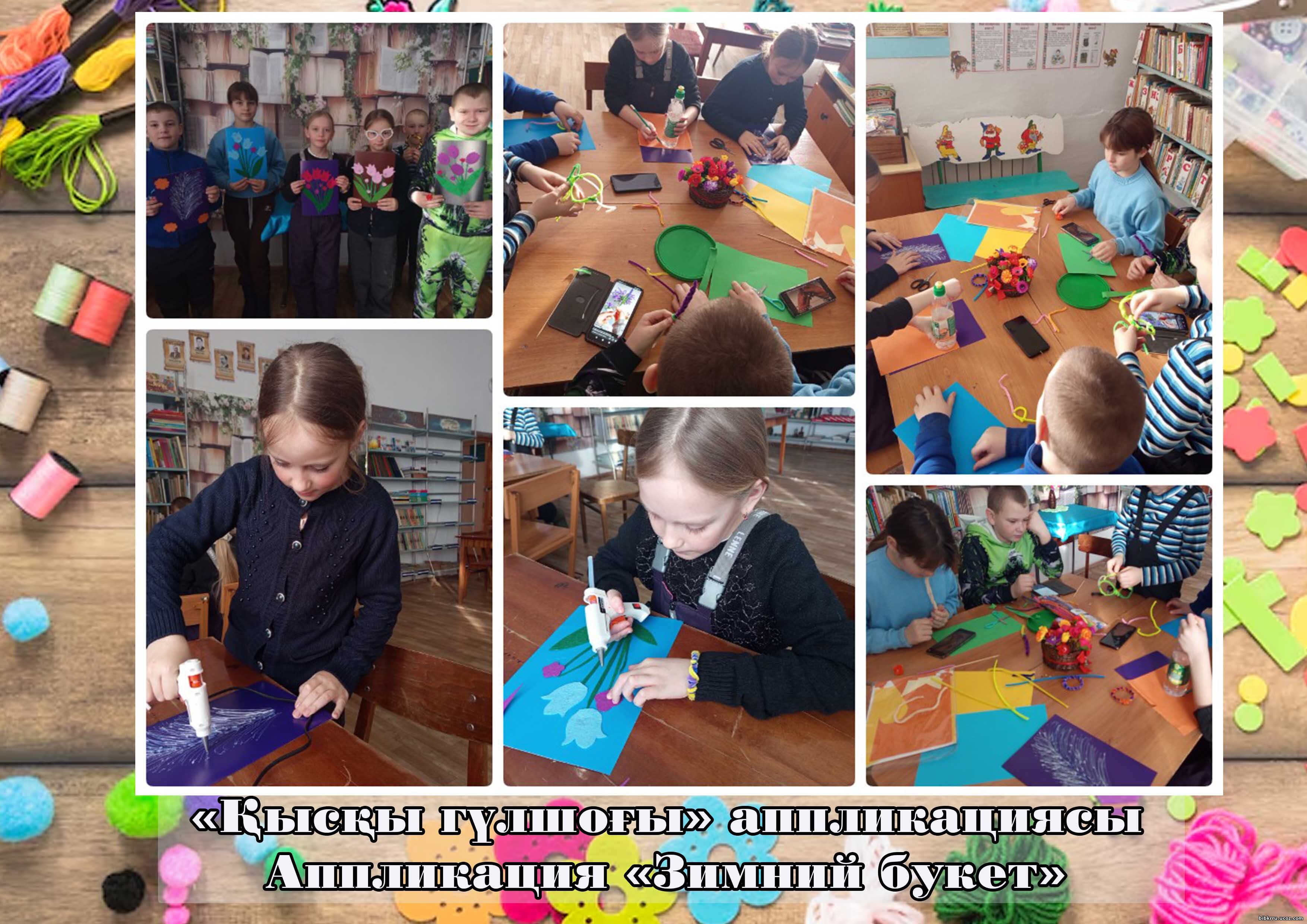 В рамках кружка «Цветочная фантазия» прошло творческое занятие, на котором ребята изготовили аппликацию «Зимний букет».