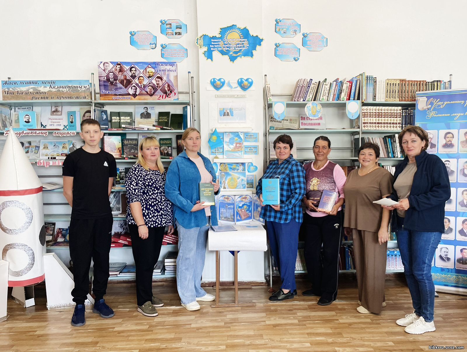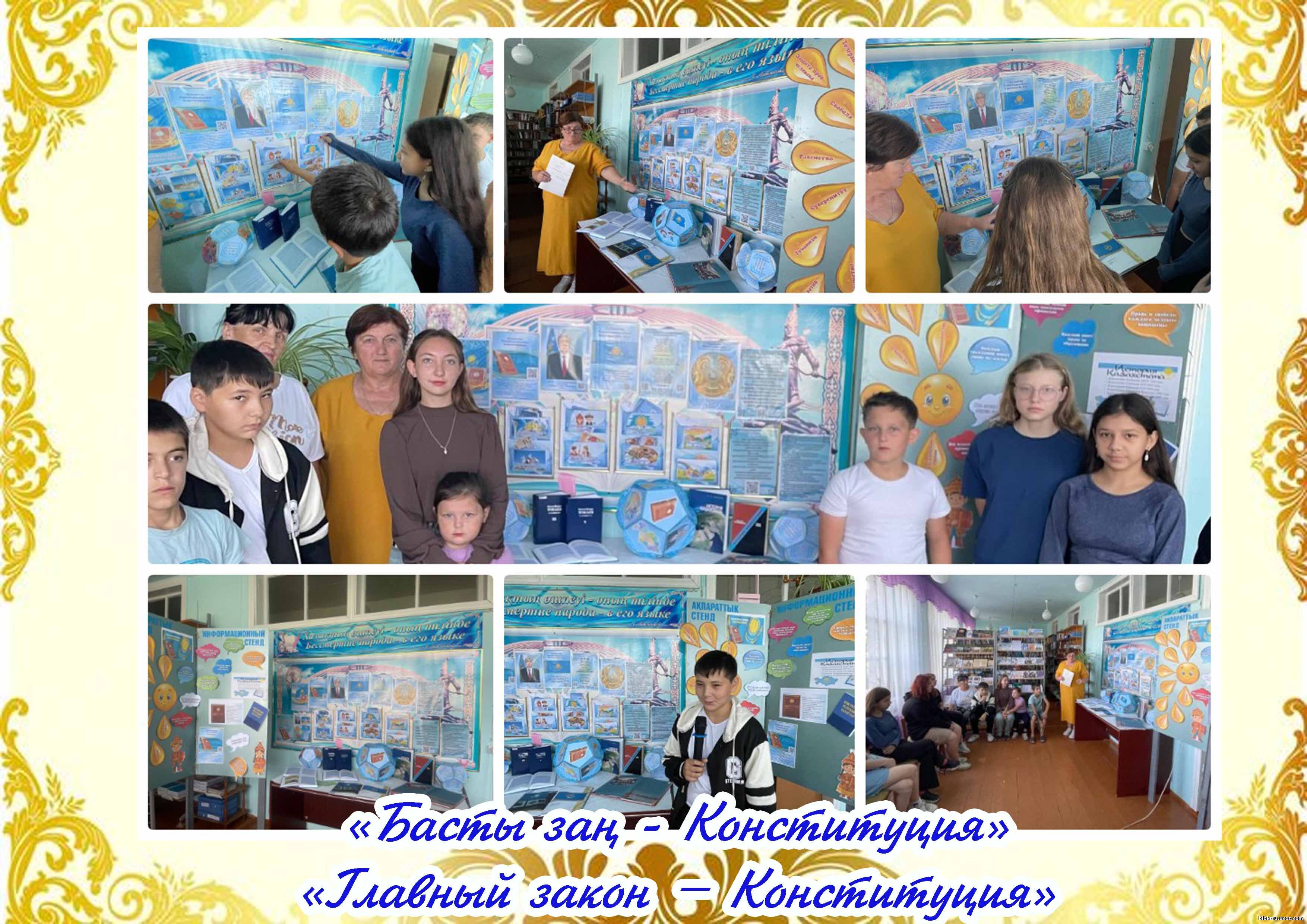 Мероприятие началось с книжной выставки «Ата Заңым», подготовленной библиотекарем. На выставке были представлены материалы о Конституции, законодательстве и истории становления правового государства в Казахстане.