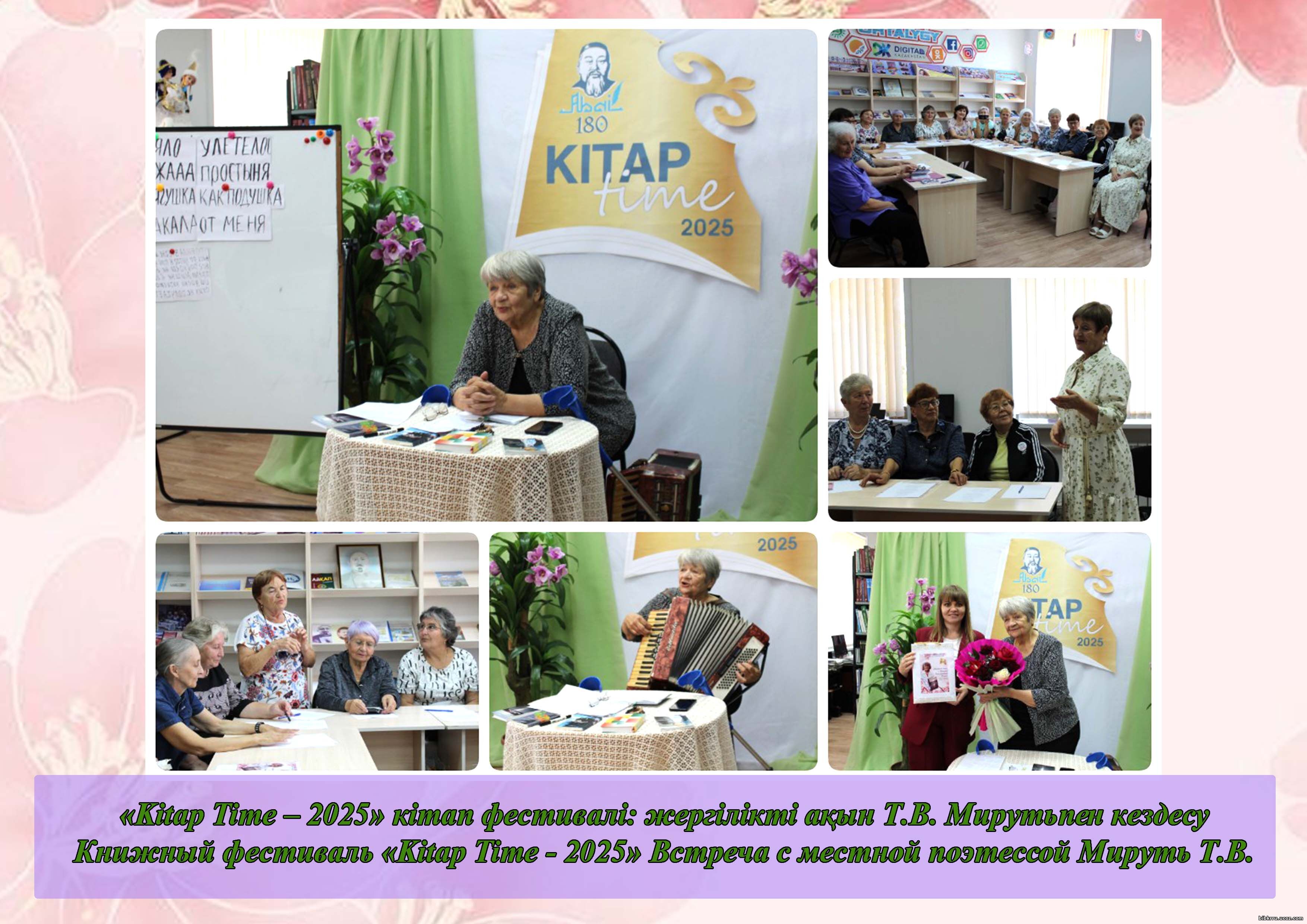 24 сентября во всех библиотеках страны прошёл общереспубликанский фестиваль «Kitap Time». В этот день в Центральной районной библиотеке состоялся творческий вечер с местной поэтессой Тамарой Владимировной Мируть.