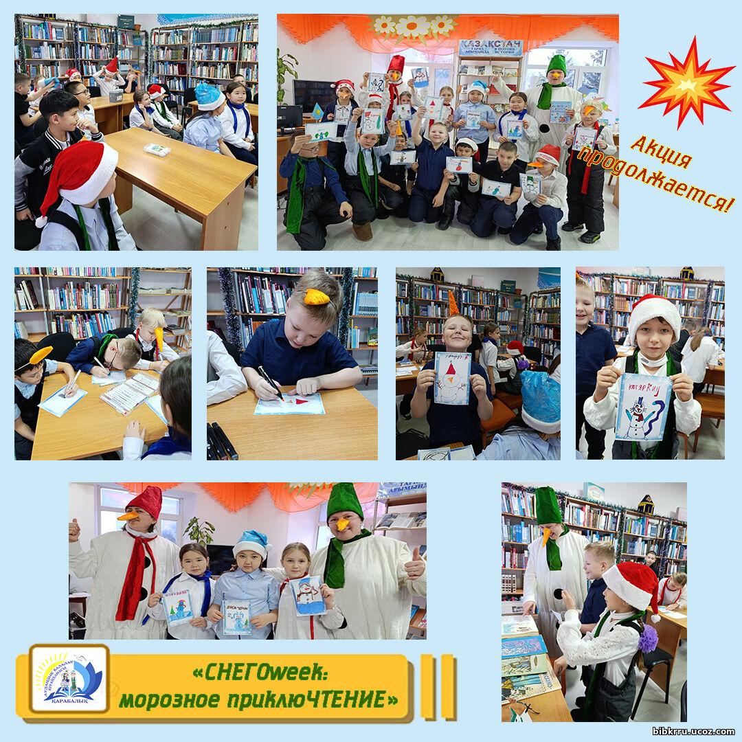 Третий день нашей акции «СНЕГОweek: морозное приклюЧТЕНИЕ» в Карабалыкской районной детской библиотеке получился невероятно уютным и творческим. Сегодня наши Снеговики-Книговики Снежок и Варежка раскрыли ребятам главный секрет: как из обычного снега и капли воображения рождаются настоящие личности!