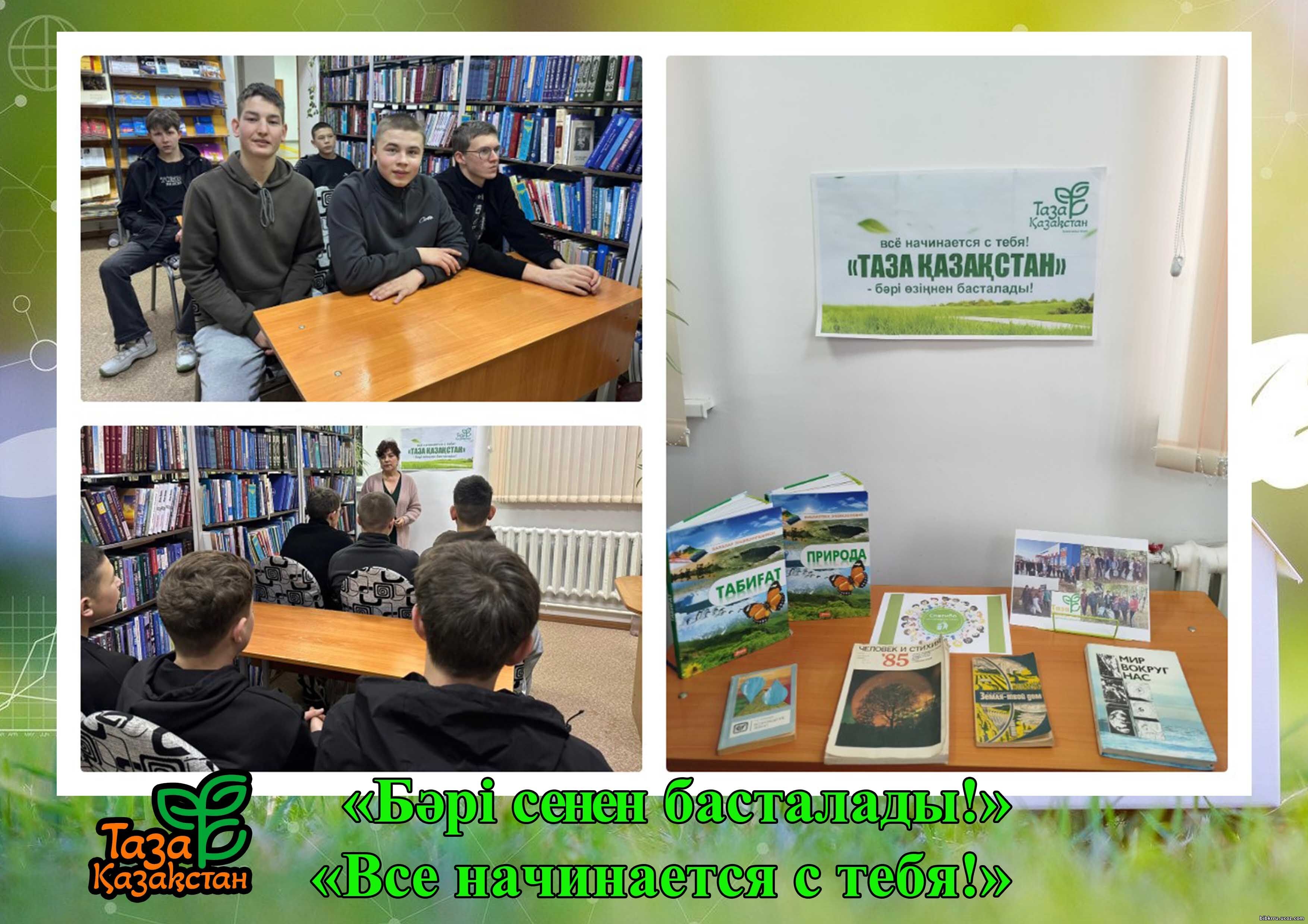 В рамках масштабной республиканской акции «Таза Қазақстан» в Тогузакской сельской библиотеке была проведена экологическая беседа «Все начинается с тебя!», которая направлена на улучшение экологической обстановки и благоустройство территории.